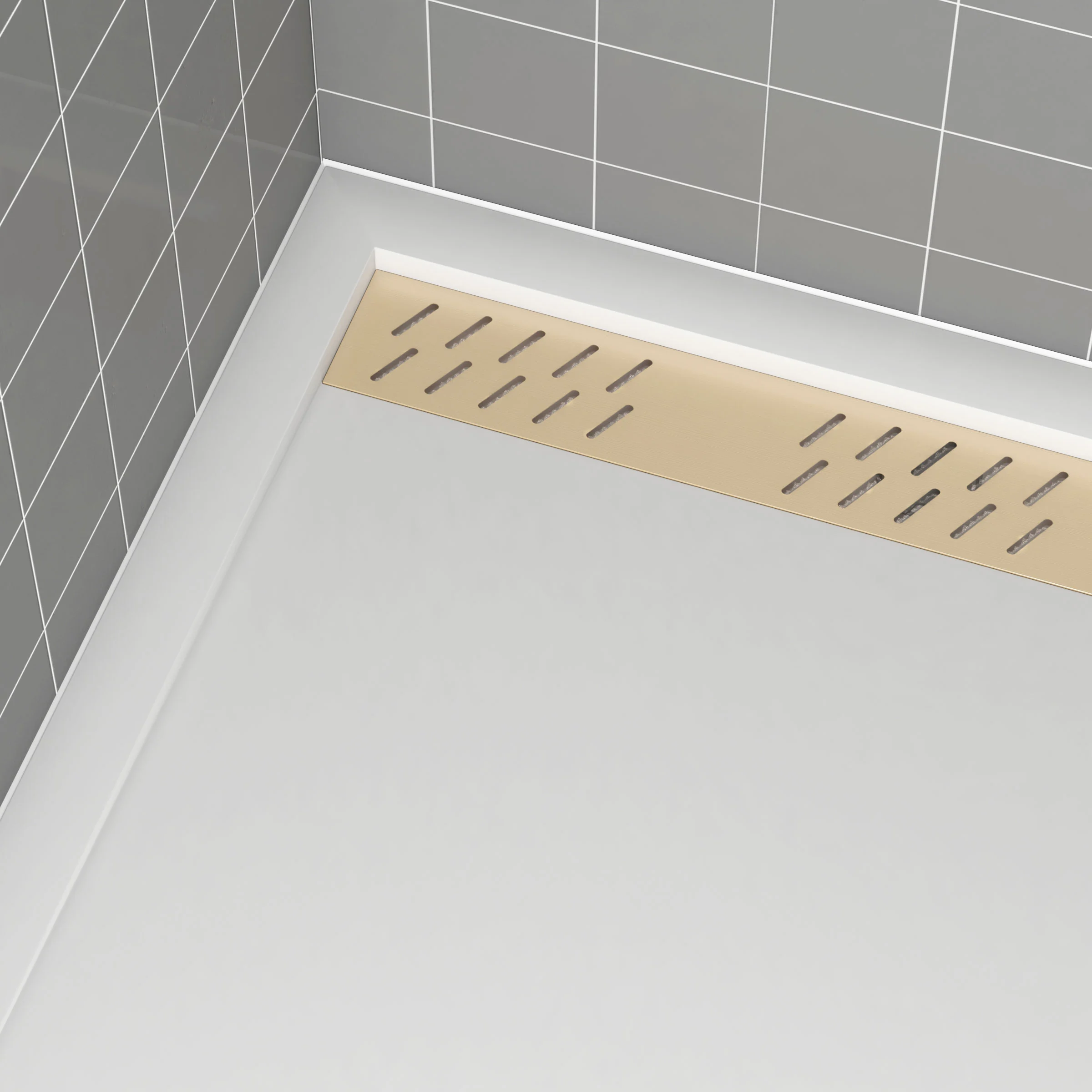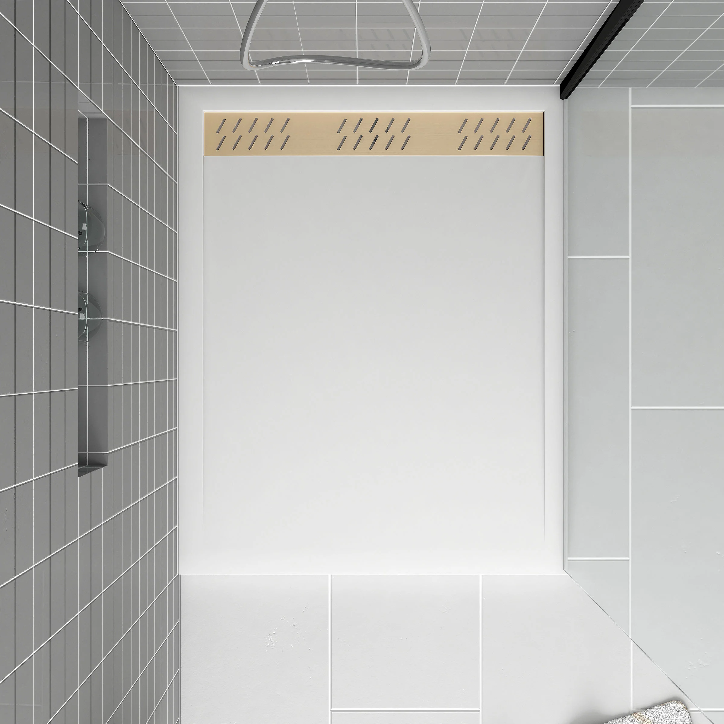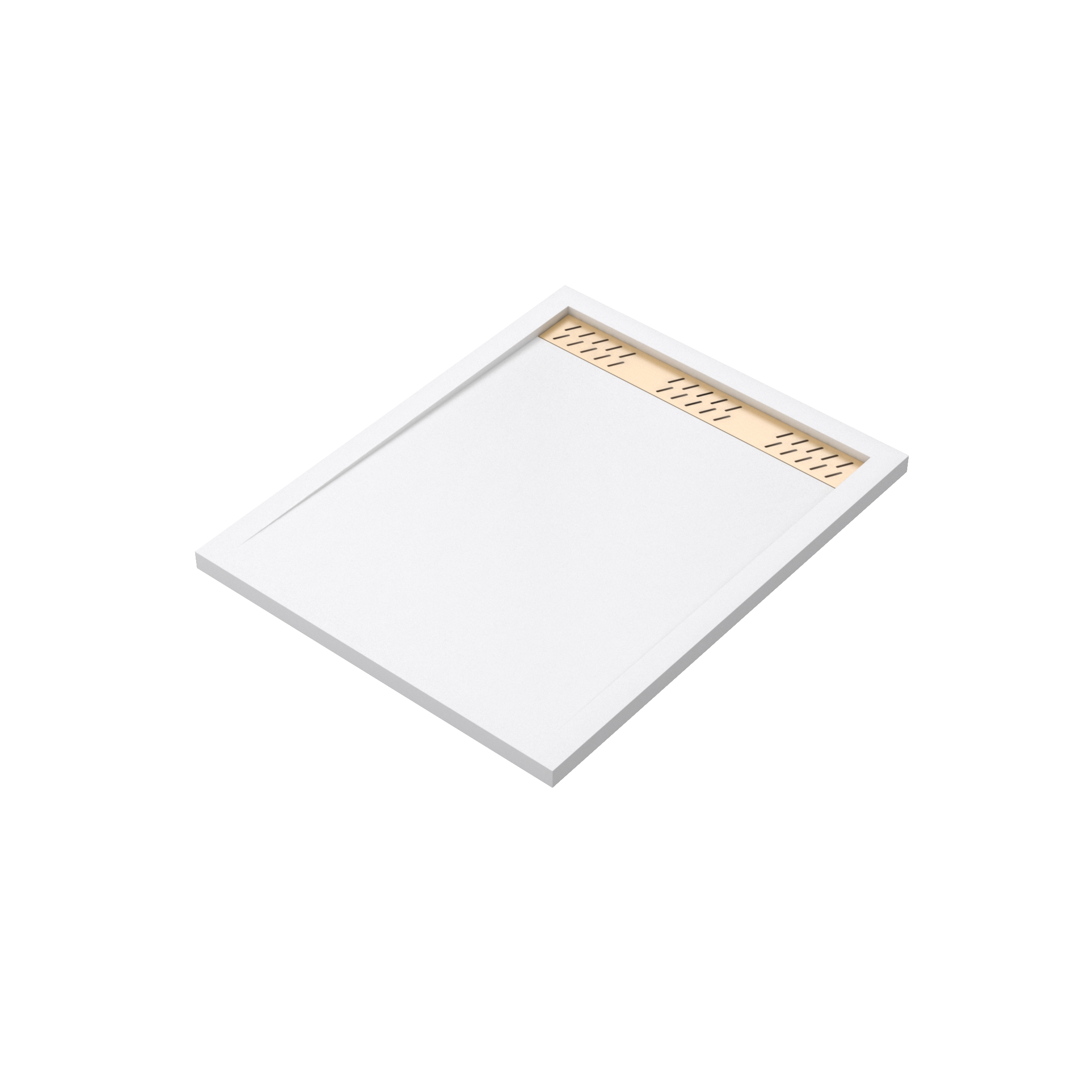 0 avis ROCK 2 Receveur de douche Blanc Effet Pierre 80x100 cm et Grille décor Linéaire Or Doré Brossé