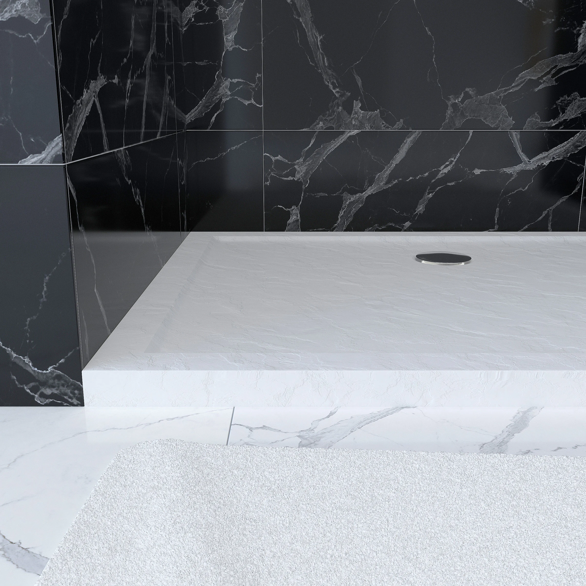 Receveur de douche Blanc Effet Pierre 80x100 cm et Grille décor Perforée Noire Mate