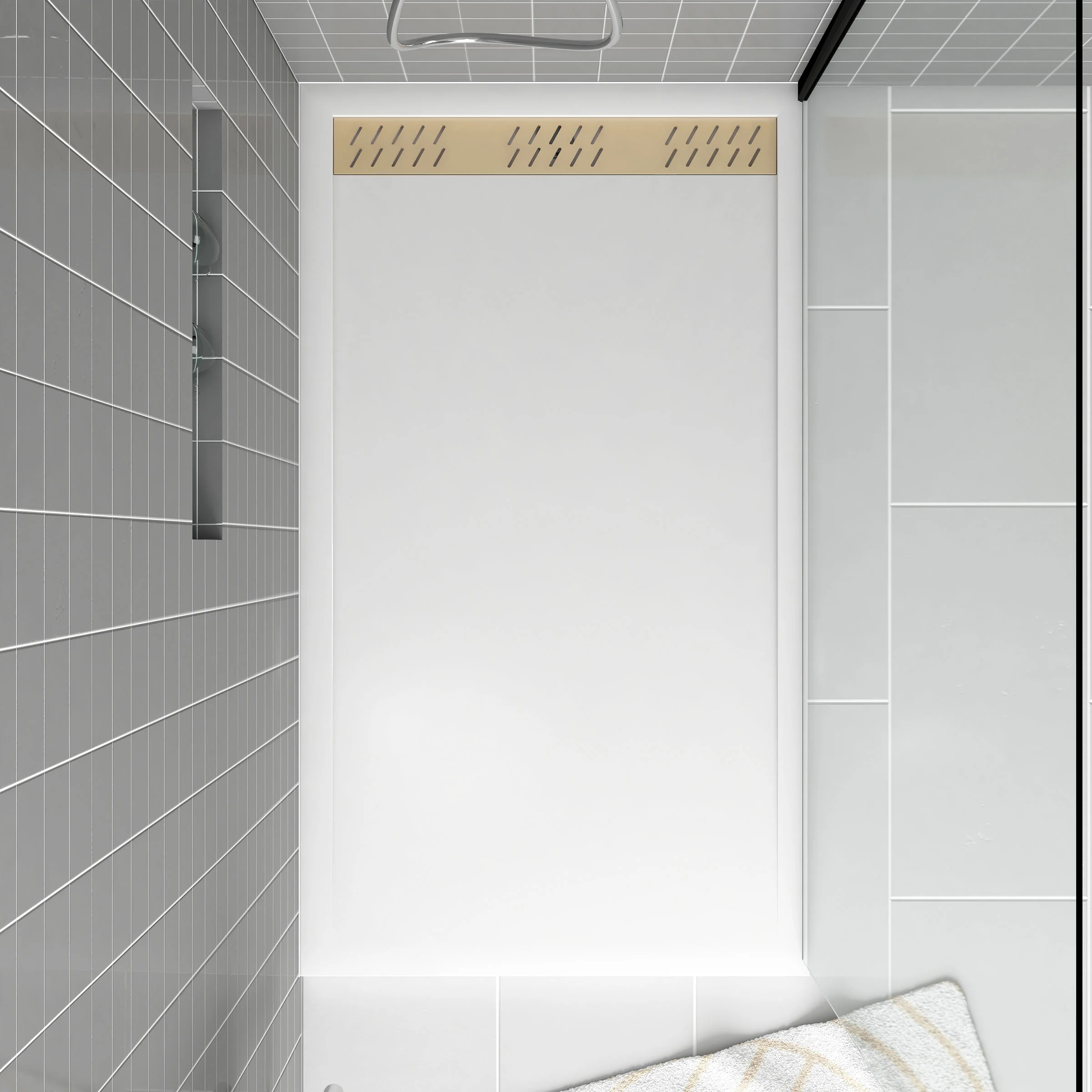 0 avis ATHENA Receveur de douche en résine blanc 80x140x3 cm effet pierre granit + grille linéaire or brossé