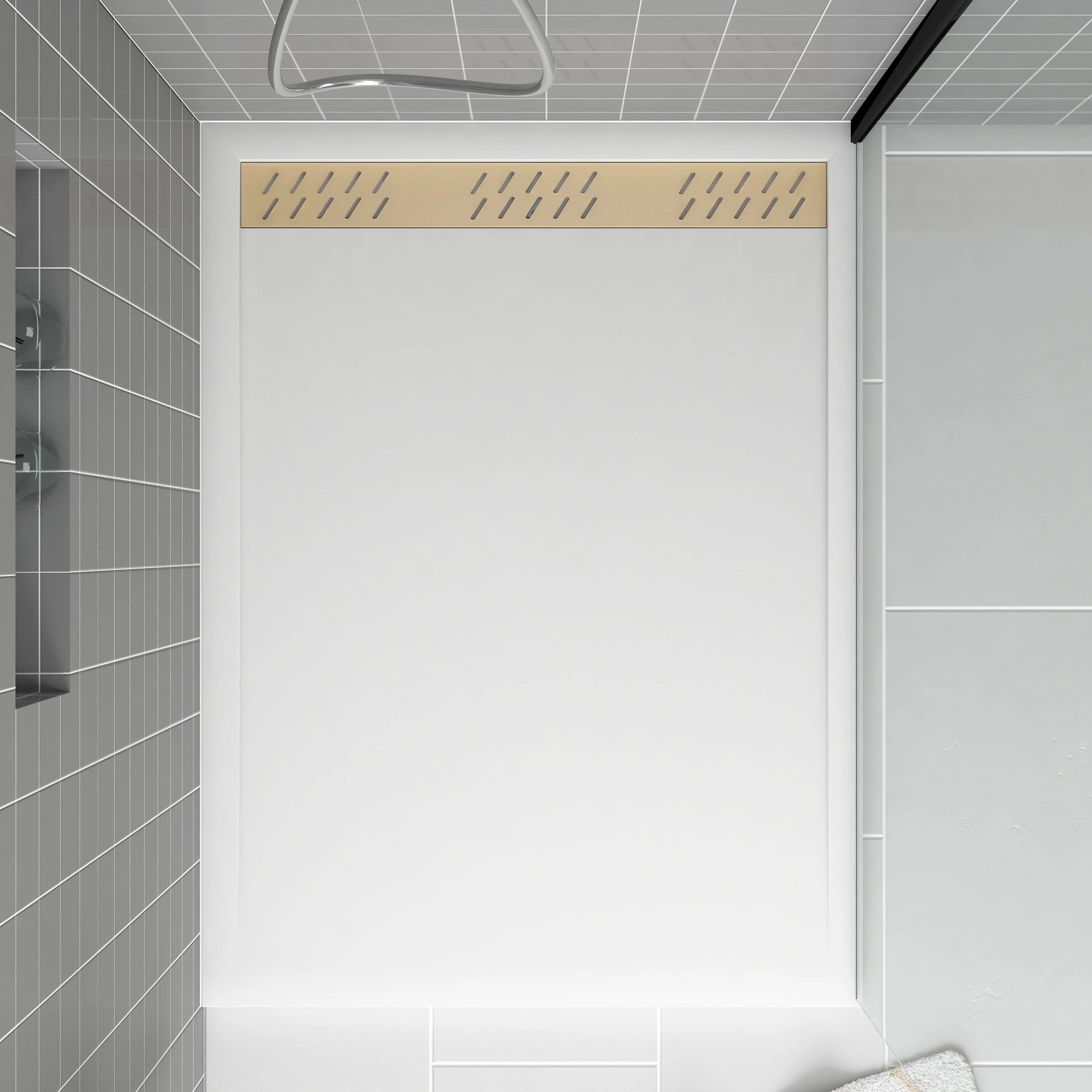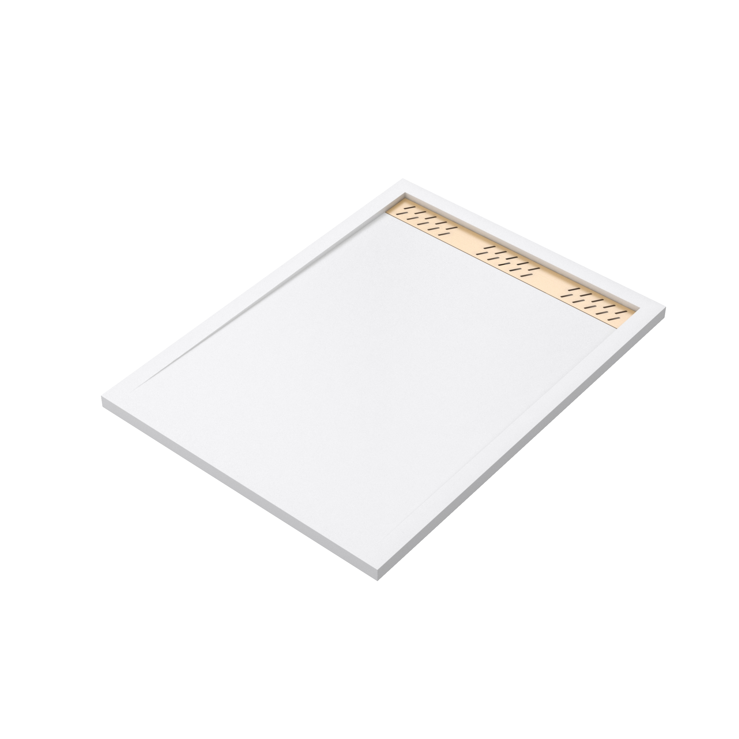 0 avis ATHENA Receveur de douche en résine blanc 90x120x3 cm effet pierre granit + grille linéaire or brossé