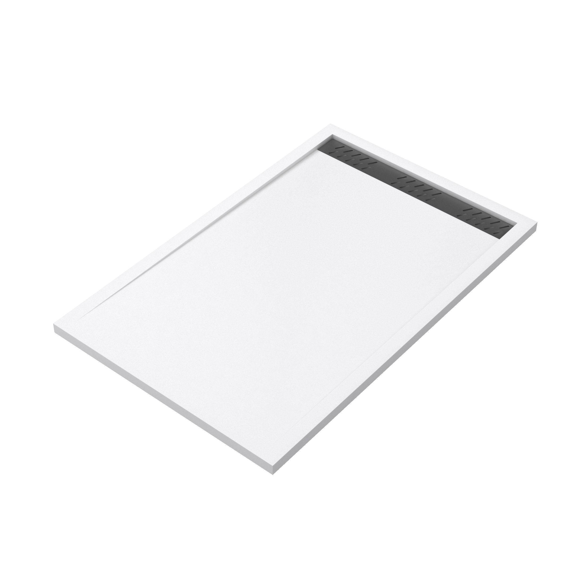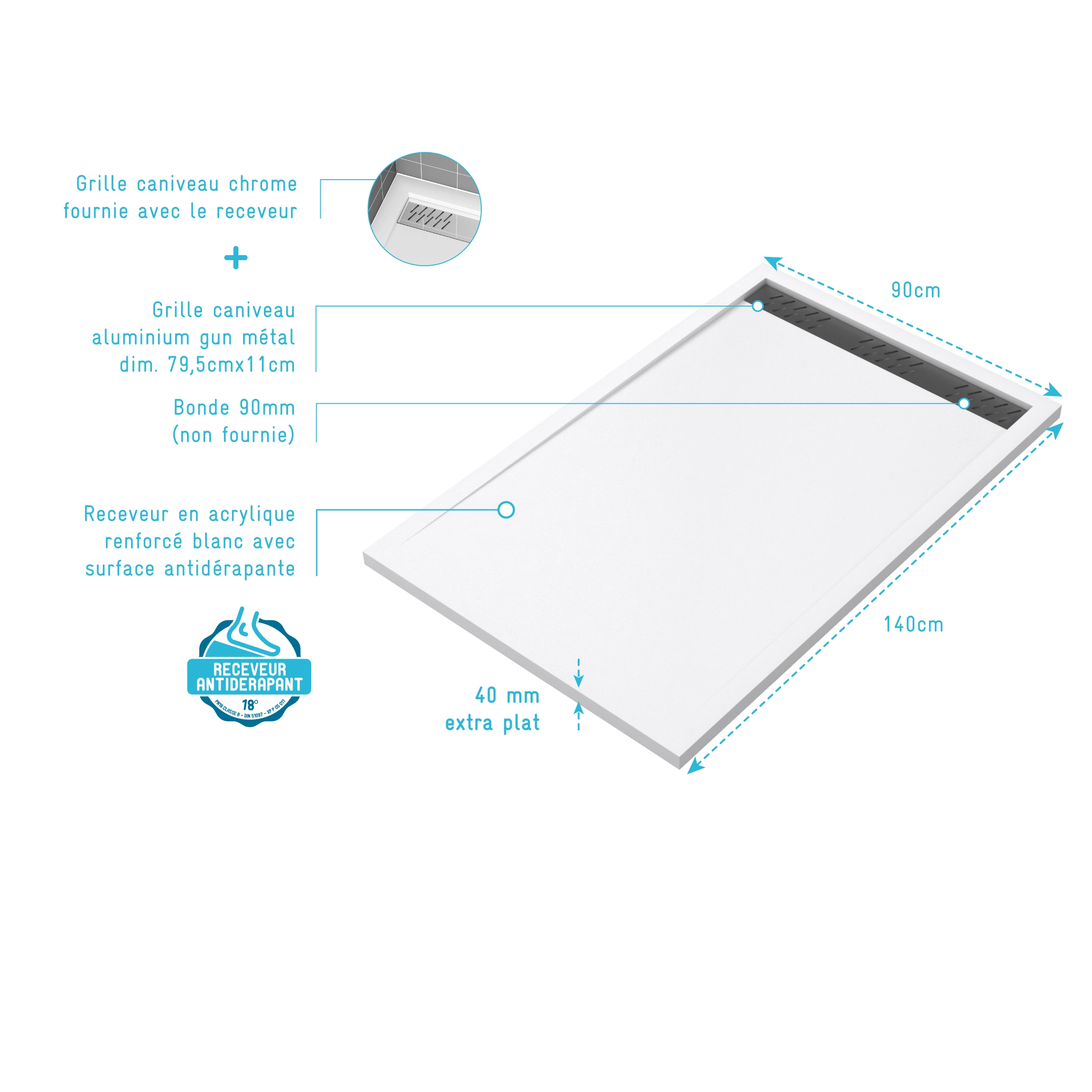 Receveur en acrylique Blanc 90x140x5 cm + Grilles Linéaires Chrome et Gun Metal – WHITENESS II