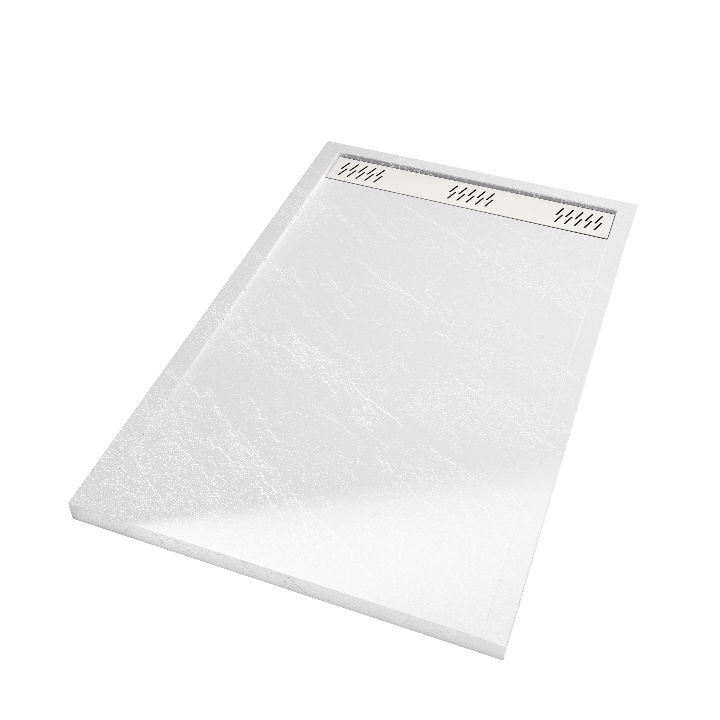 Receveur en acrylique Blanc Effet Pierre 90x140x5 cm + Grilles Linéaires Chrome et Blanche Mate
