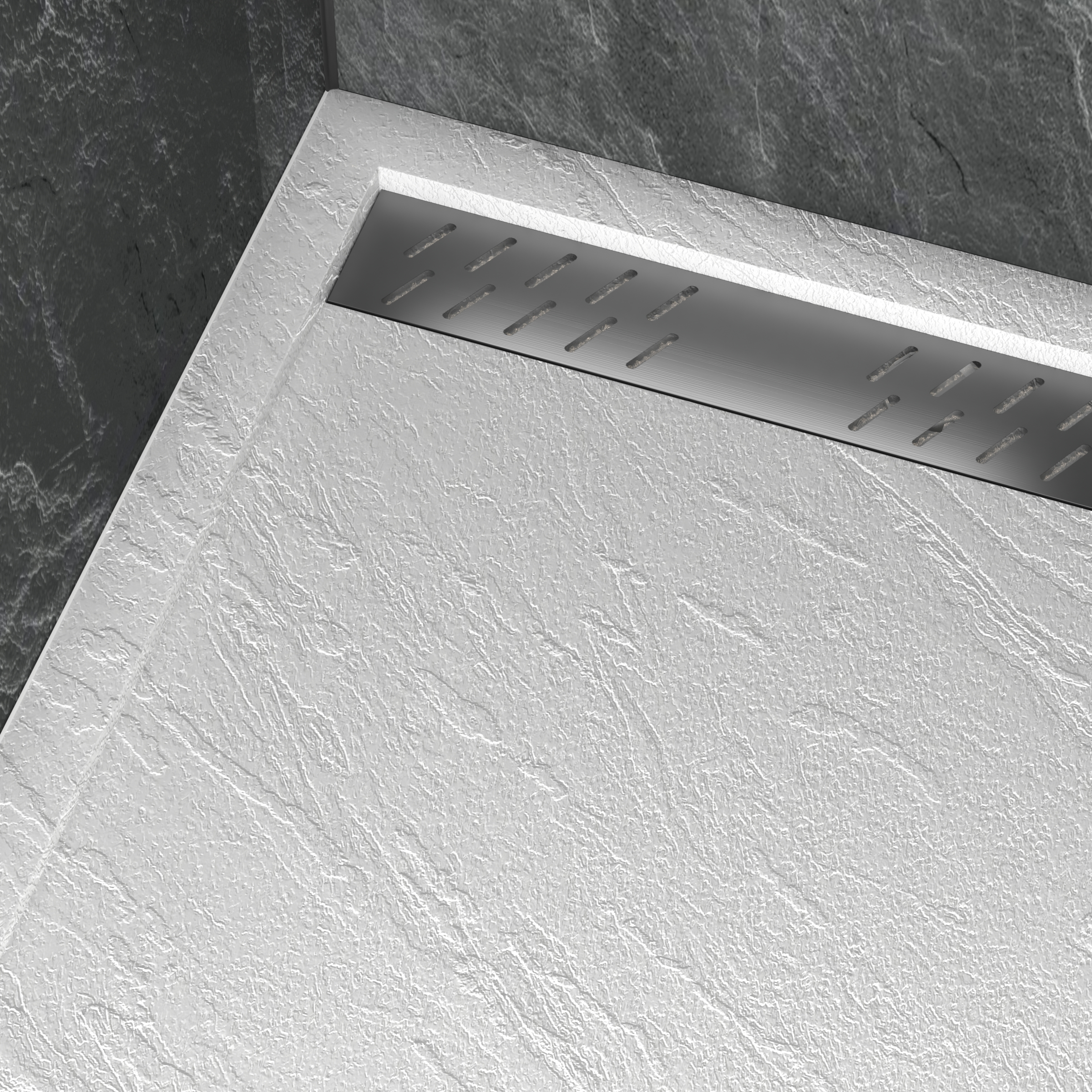 Receveur de douche en résine blanc 90x140x3 cm effet pierre granit + grille linéaire Chrome