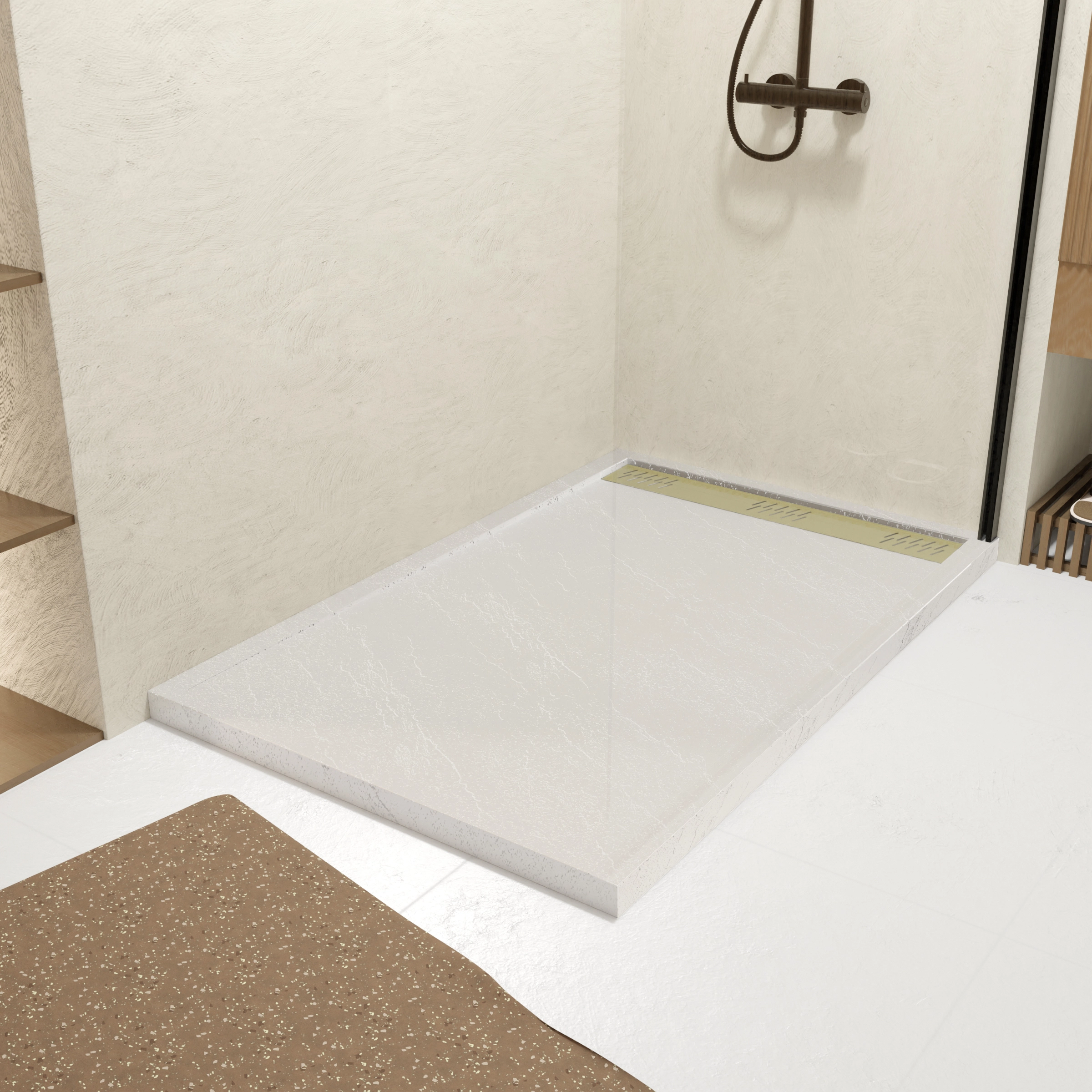 0 avis ATHENA Receveur de douche en résine blanc 90x140x3 cm effet pierre granit + grille linéaire or brossé