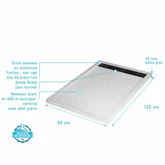 Receveur en Acrylique MOON Blanc Effet Pierre 80x120x4 cm Grille Lineaire Noire