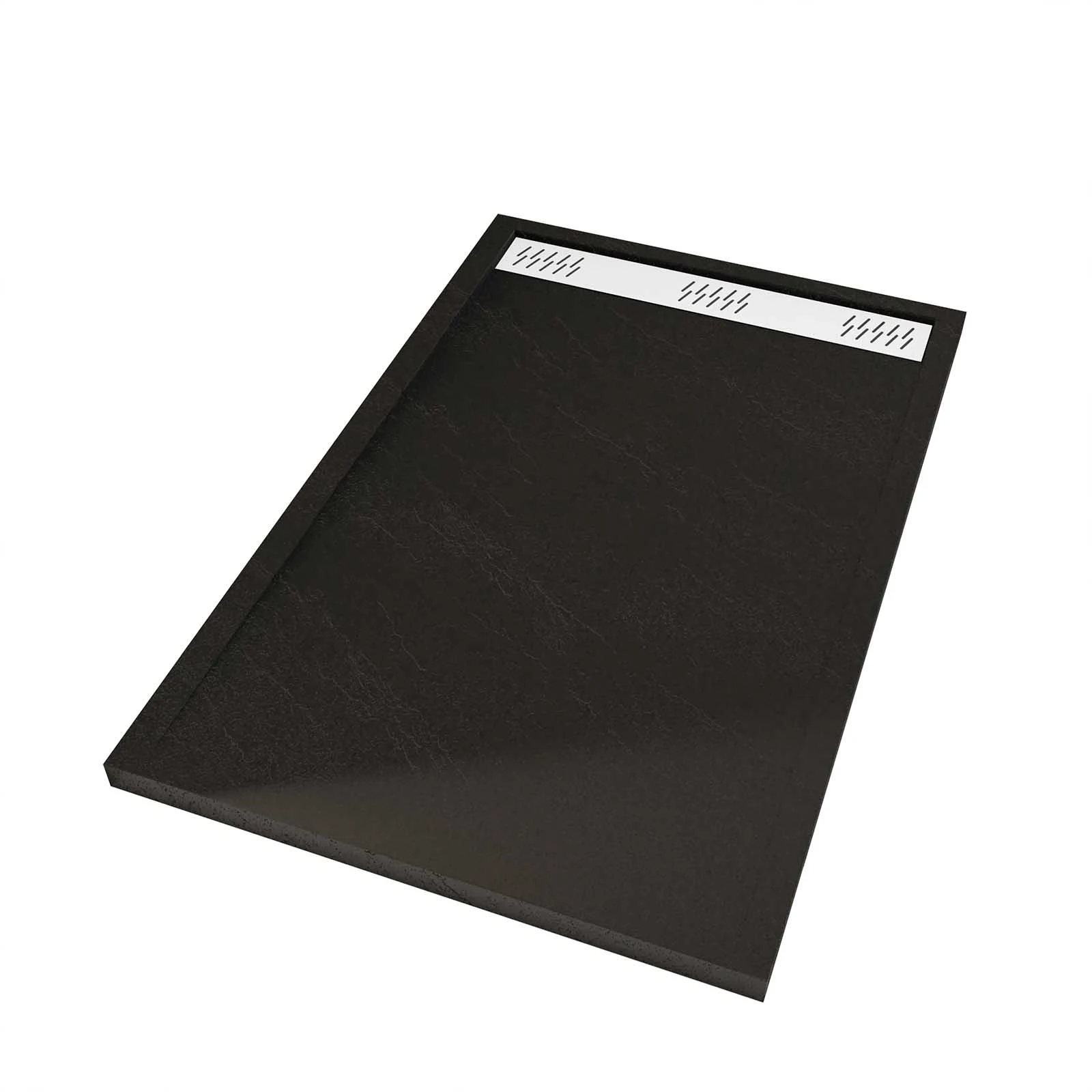 0 avis METEORA Receveur en acrylique Noir Effet Pierre 80x120x4 cm + Grilles Linéaires Chrome et Noire Mate