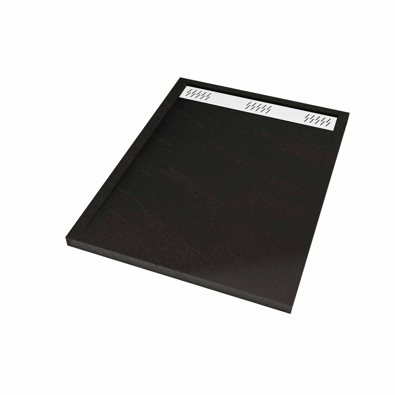 Receveur en acrylique Noir Effet Pierre 90x120x4 cm + Grilles Linéaires Chrome et Blanche Mate