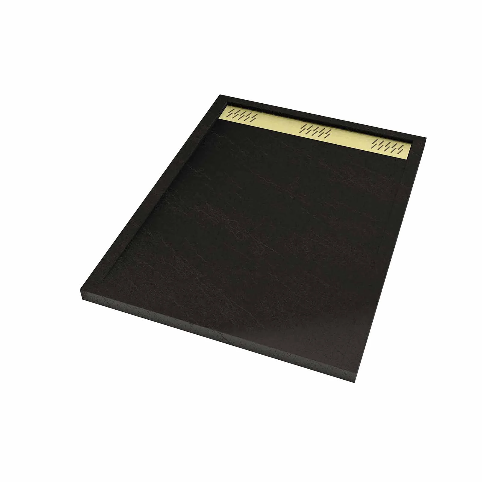 Receveur de douche en résine noir 90x120x3 cm effet pierre granit + grille linéaire or brossé