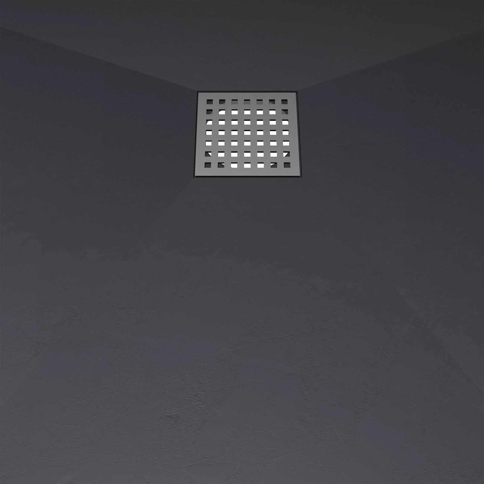 0 avis METEORA Receveur en acrylique Gris Effet Pierre 90x90x4 cm + Grilles Linéaires Chrome et Noire - METEORA