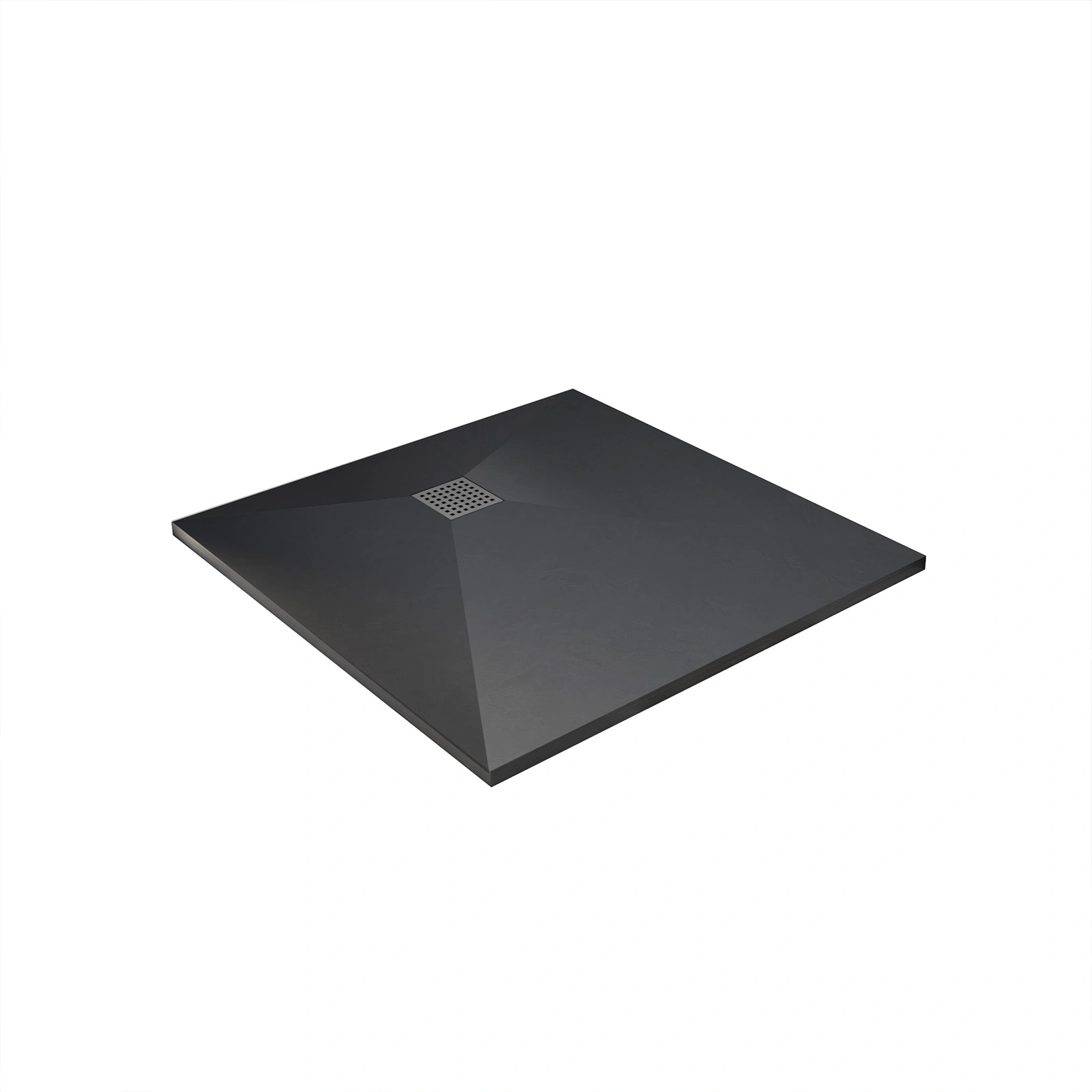 0 avis ROCK 2 BLACK Receveur en Resine SMC Effet Pierre Noire 90x90cm - Grille Inox - ROCK 2