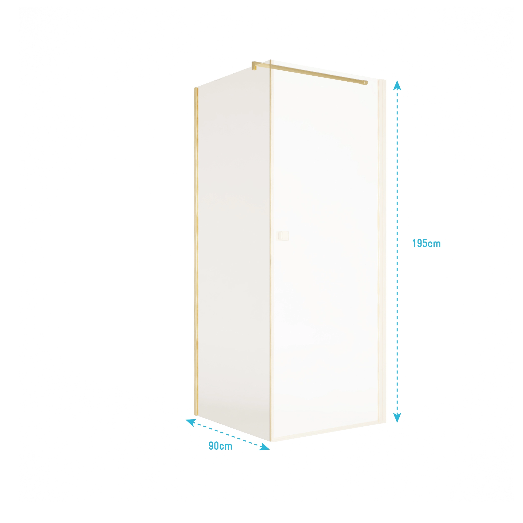 Retour pour Porte de Douche 90x195cm Verre Trempe 8mm Anticalcaire – Alu Or Brosse – GOLD ELEMENTARY