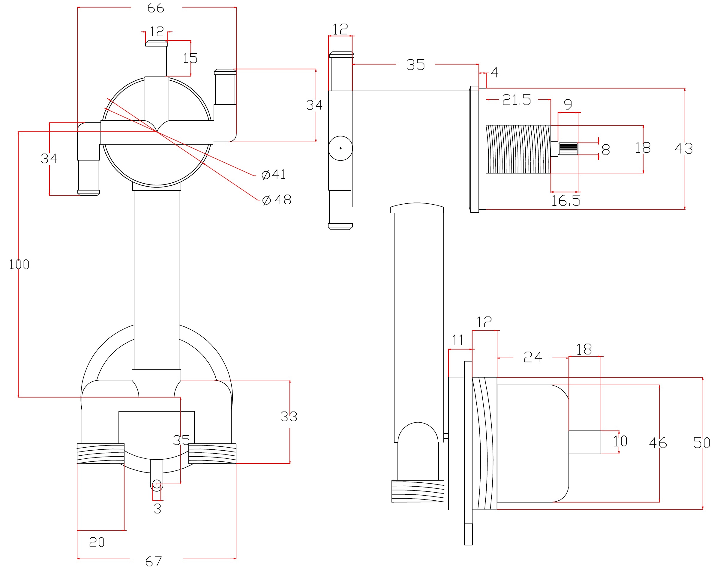 Mitigeur mécanique à 3 voies pour cabine de douche.