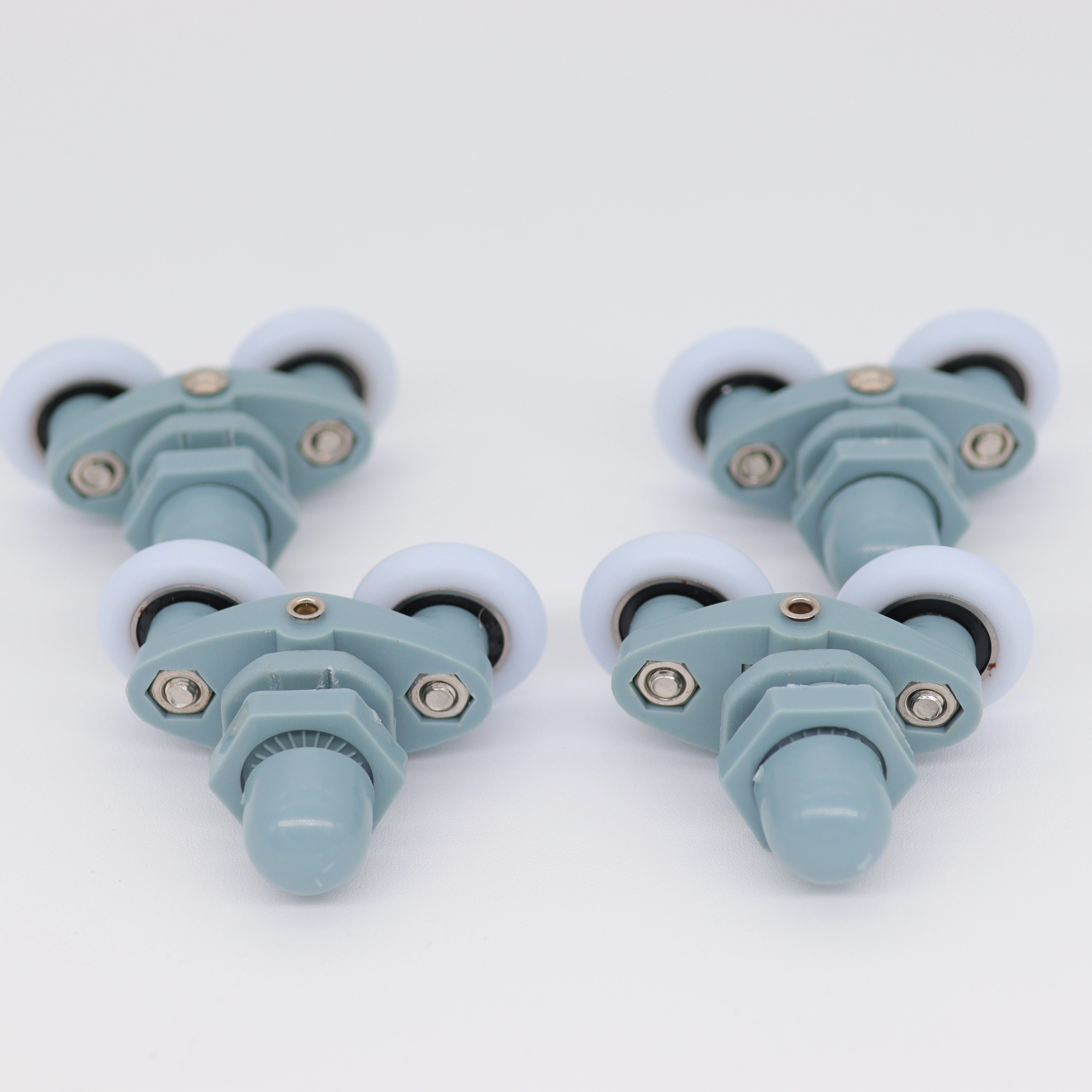 Ce modèle de roulette double est composé d’un corps en acier et d’éléments en plastique type ABS dont une partie excentrique permettant de régler la hauteur de porte.