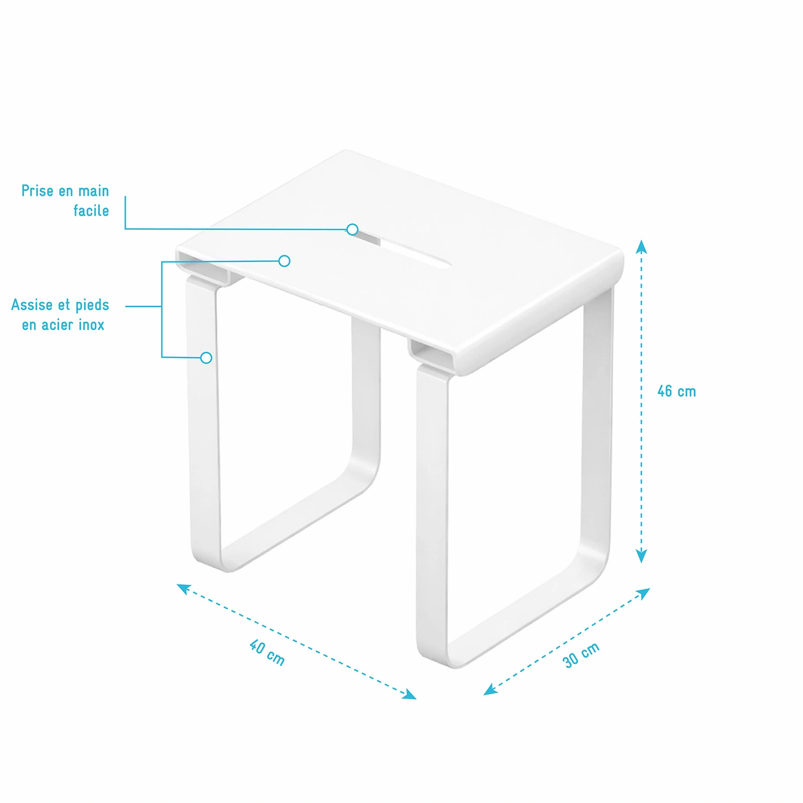 - Siège de douche 30cm x 40cm x 46cm