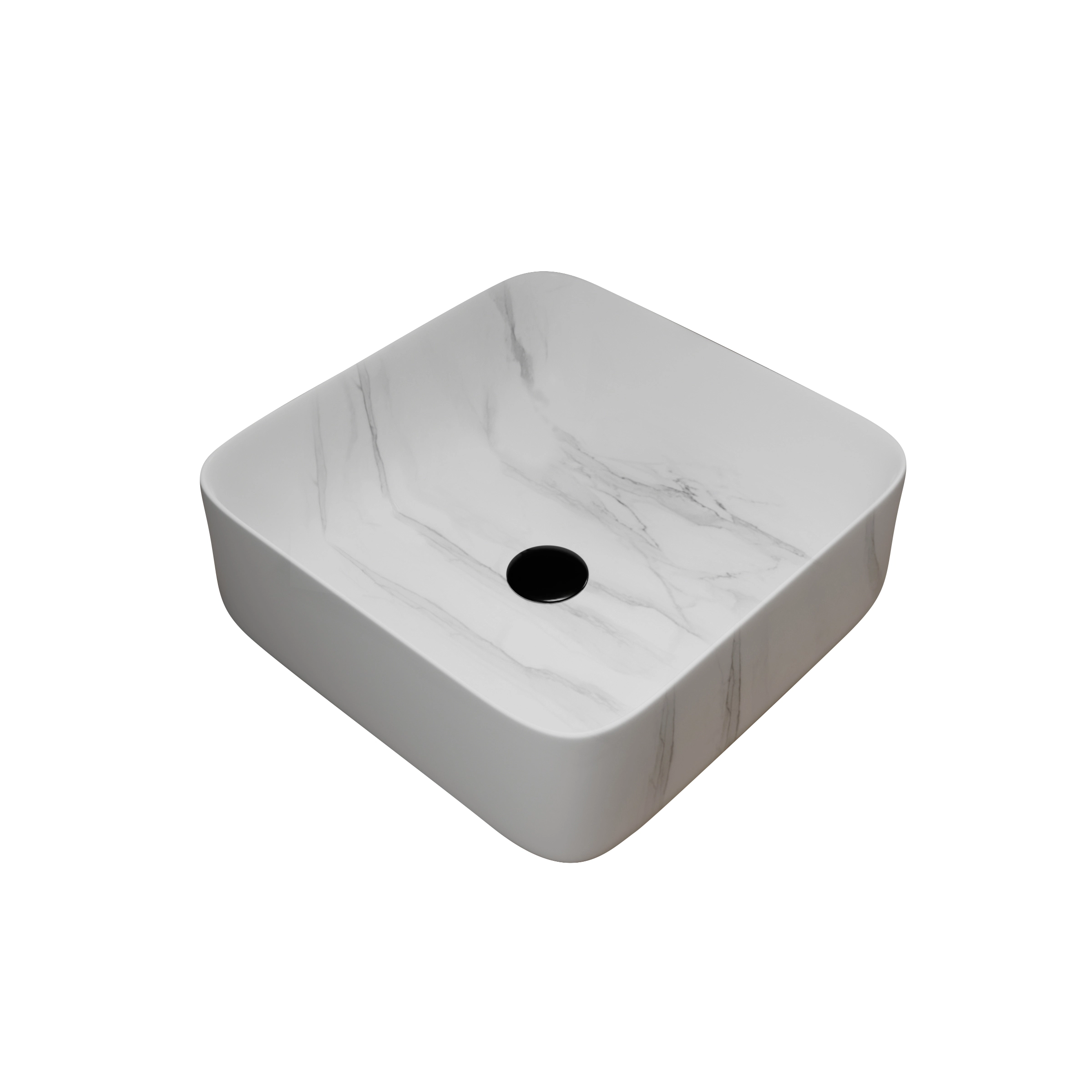 Vasque à poser Carrée en Céramique Blanche Mat Effet Marbre - 38x38x13 cm - WHITE MARBLE
