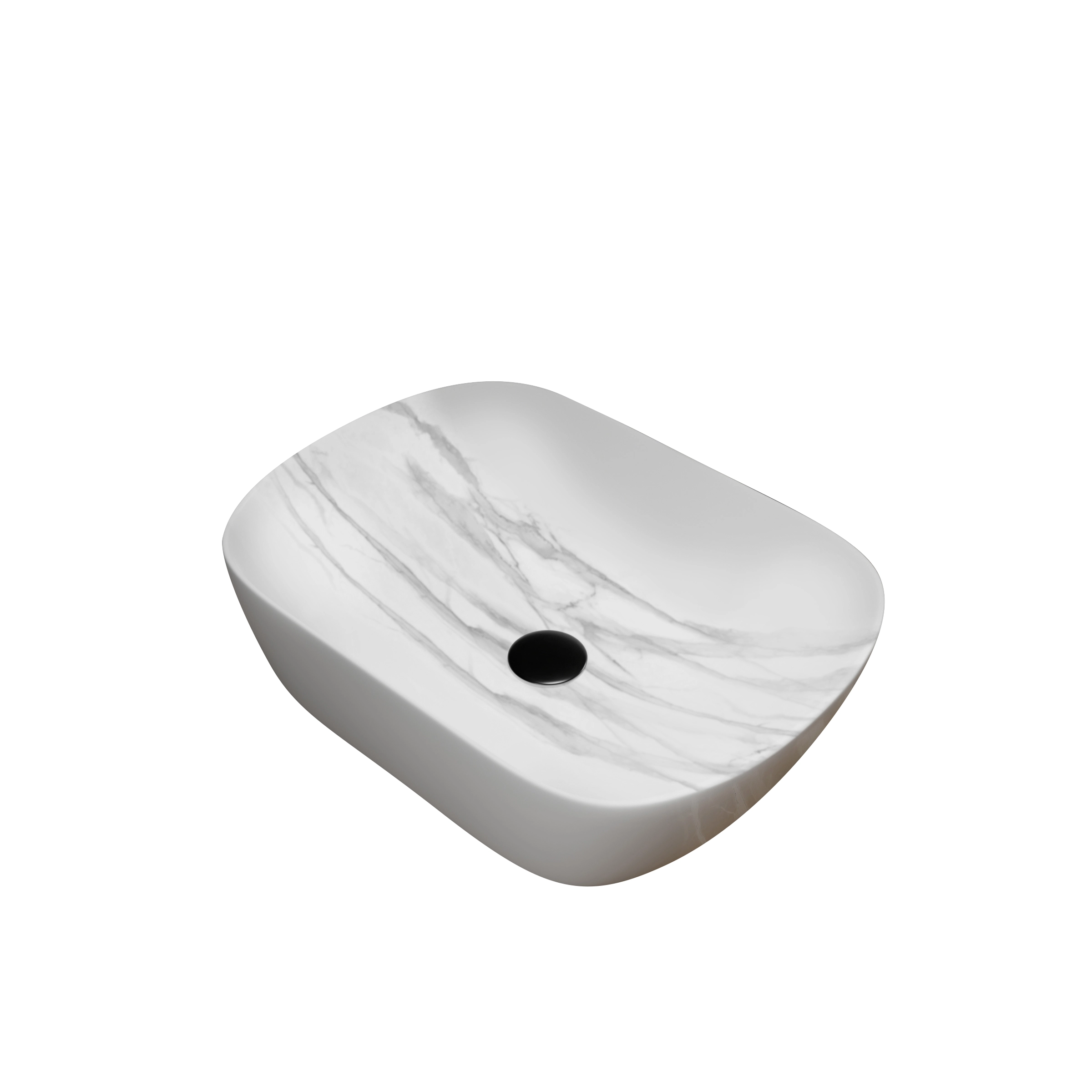Vasque à poser Rectangle en Céramique Blanche Mat Effet Marbre – 45,5×32,5×13 cm – MARBRA