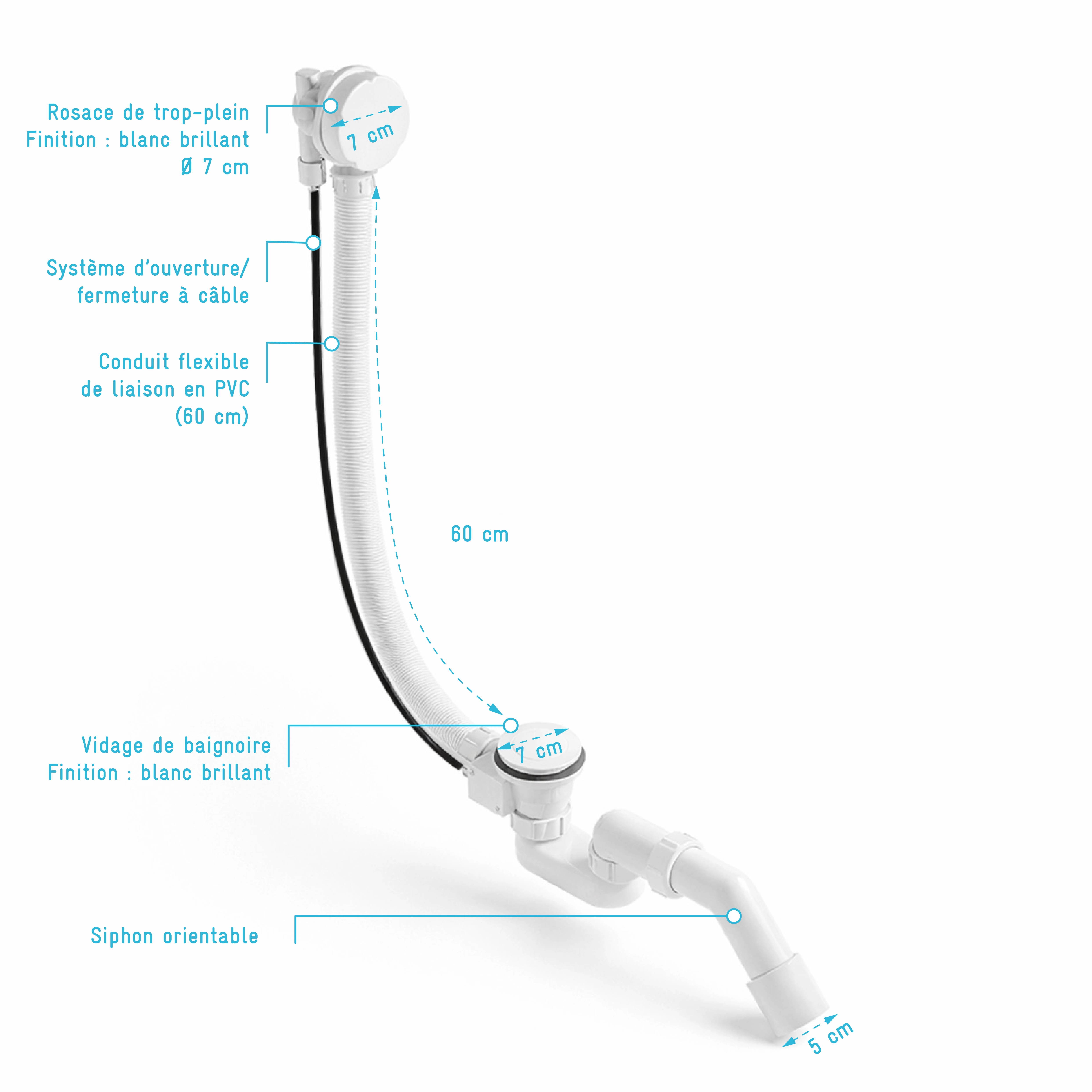 - Longueur du tuyau : 60 cm