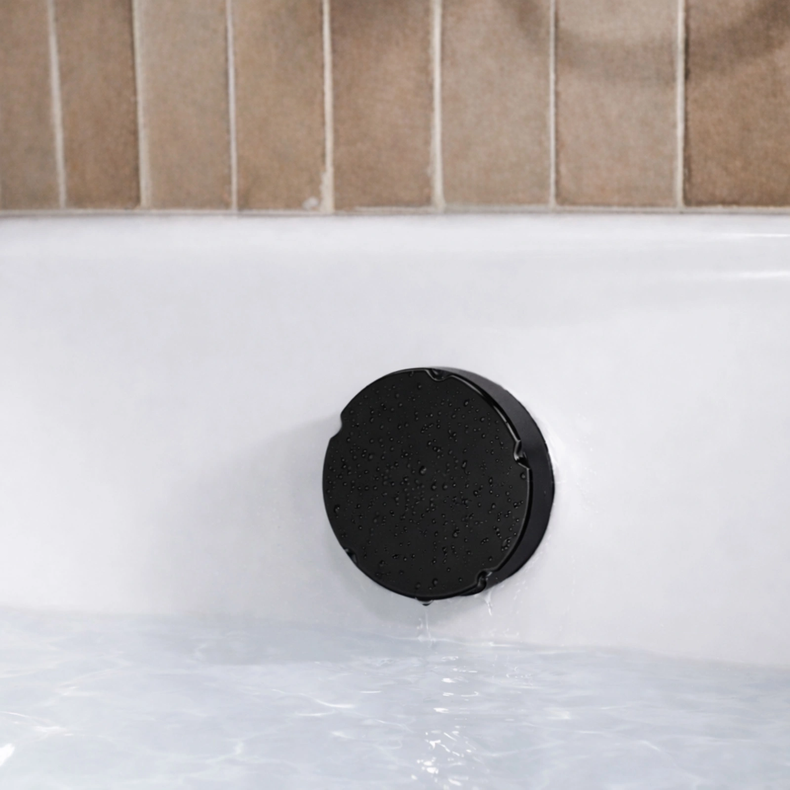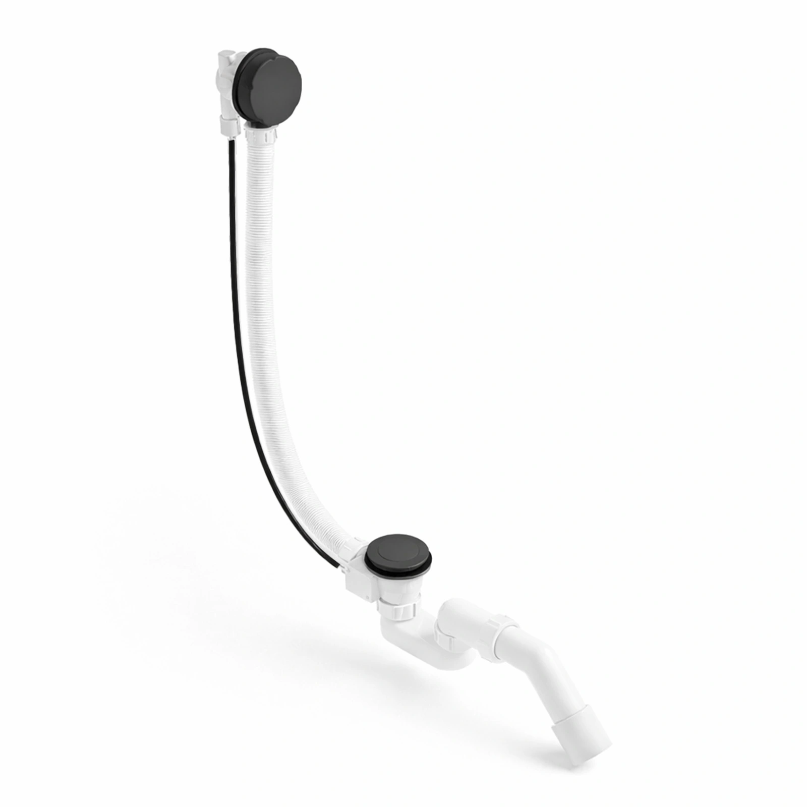 Vidage complet pour baignoire avec finition noir mat, idéal pour une intégration harmonieuse avec les modèles de baignoires blanches.