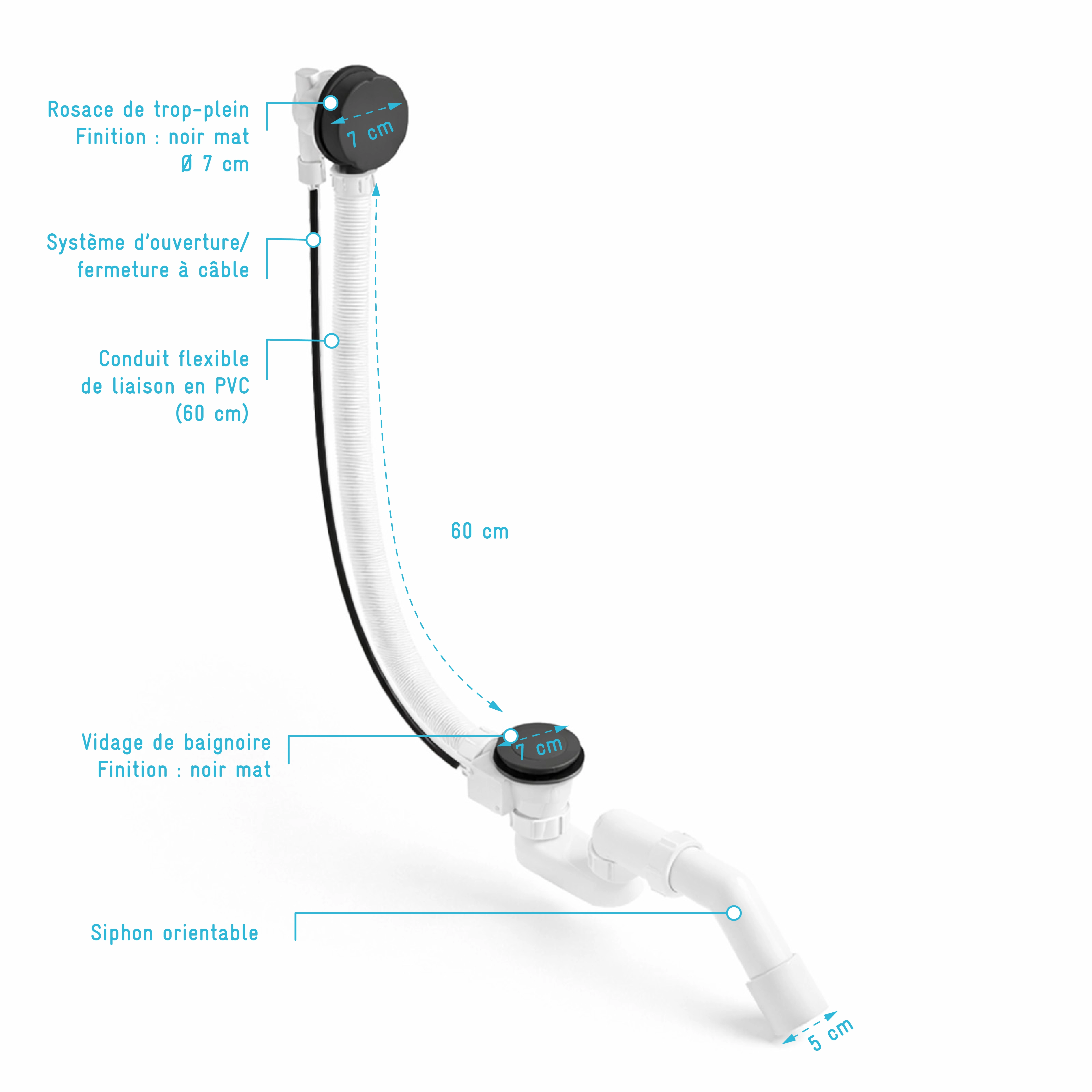 - Longueur du tuyau : 60 cm